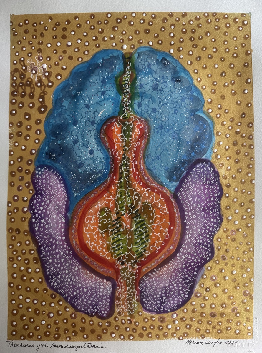 Miriam HughesThe Hidden Treasure of Neurodivergent BrainMIXED MEDIA COLLAGE AND WATER COLORFramed: 23.5 x 17.25 x 1 ″